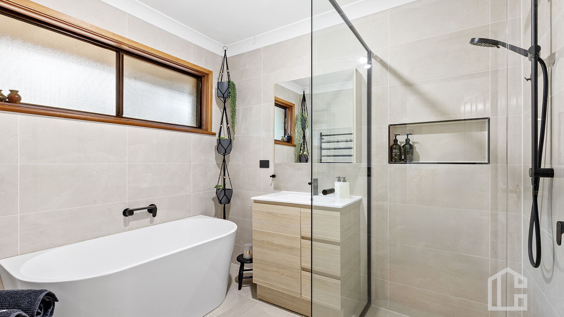 LAYOUT - Entry level offers 3 bedrooms with built in robes, modern main bathroom with bathtub and seperate toilet, updated kitchen, large L-shape living and dining room that opens onto a huge deck. Downstairs: Multipurpose room that has been purposefully fitted out to offer a comfortable space for guests to stay, study nook, modern laundry and second bathroom. 2 full bathrooms over all.