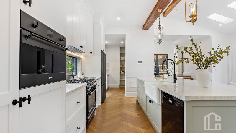 FEATURES - Enticing luxurious kitchen with YDL stone counter tops, island bench with porcelain double sink, 900ml Smeg gas cooking plus integrated microwave/2nd oven, plumbed refrigerator and exquisite butlers. Ducted reverse cycle air conditioning, herringbone flooring, wainscoting, high skirtings, full cabinetry. Connoisseur's wine display cellar in great room, display shelves, Parisi tap ware and toilets, LED lighting, solid timber doors, commercial style windows, reclaimed brickwork.