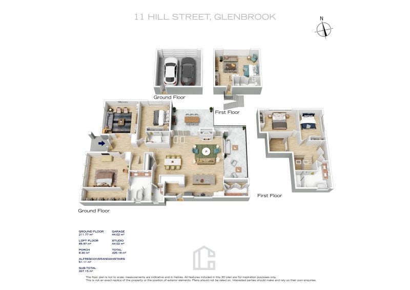 LAYOUT - Great room with cathedral beamed ceilings and gas log fireplace, grandiose formal living, landing with outlook, 5 impressive bedrooms with full cabinetry to 4 (3 with en-suites), lavish primary suite with soaring ceilings, generous fitted walk in robe and luxurious bathroom with stone tops, large shower, and dual basins. 4.5 bathrooms overall. Note - huge 5th bedroom is self contained (above garage) with kitchenette and bathroom - multiple potential uses.