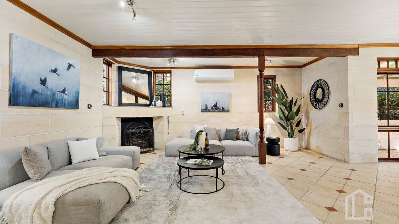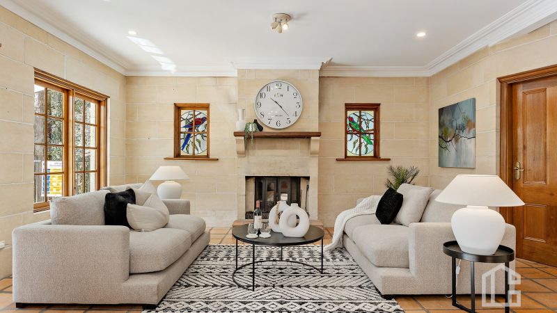 STYLE - Crafted by a master stonemason, this limestone residence is a true lifestyle property with a Mediterranean soul in a distinctly Australian bush setting. The design draws inspiration from Tuscan villas, combining quarried stone, timber, soaring ceilings and ornate finishes to deliver timeless character. The separate guest cabana adds flexibility, ideal for visitors, extended family or a creative retreat. For its sale we've turned this majestic family home into a pop-up art gallery featuring beautiful artworks by local artist Kerry-Anne Knibbs.