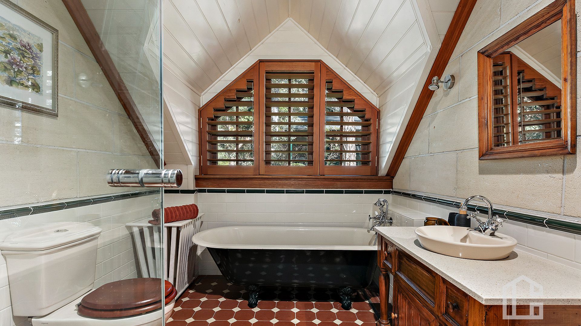 FEATURES - Entertainer's kitchen with terracotta tiling, timber finishes, 1200mm Smeg oven, gas cooktop, butler's pantry and stone-walled wine cellar; conservatory and open plan living and dining areas with French doors opening to alfresco spaces; soaring cathedral ceilings, open fireplaces, leadlight and stained glass, ornate cornices, dormer windows and skylights; reverse-cycle air conditioning, LED lighting and ceiling fans; in-ground lap and wading pool, firepit, paved terrace and covered verandas for year-round entertaining; lush gardens with fruit trees, ponds, water features, timber boardwalk and meandering pathways. powered timber and Colorbond sheds; 10,000L water tank; double carport with Tesla charging station, guest parking and rear gated access.