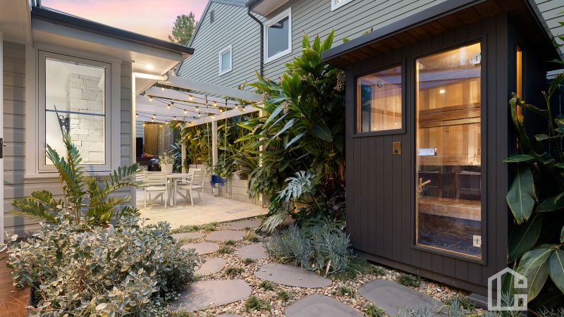 • Custom Nordic HUUM sauna, outdoor shower + fire pit zones