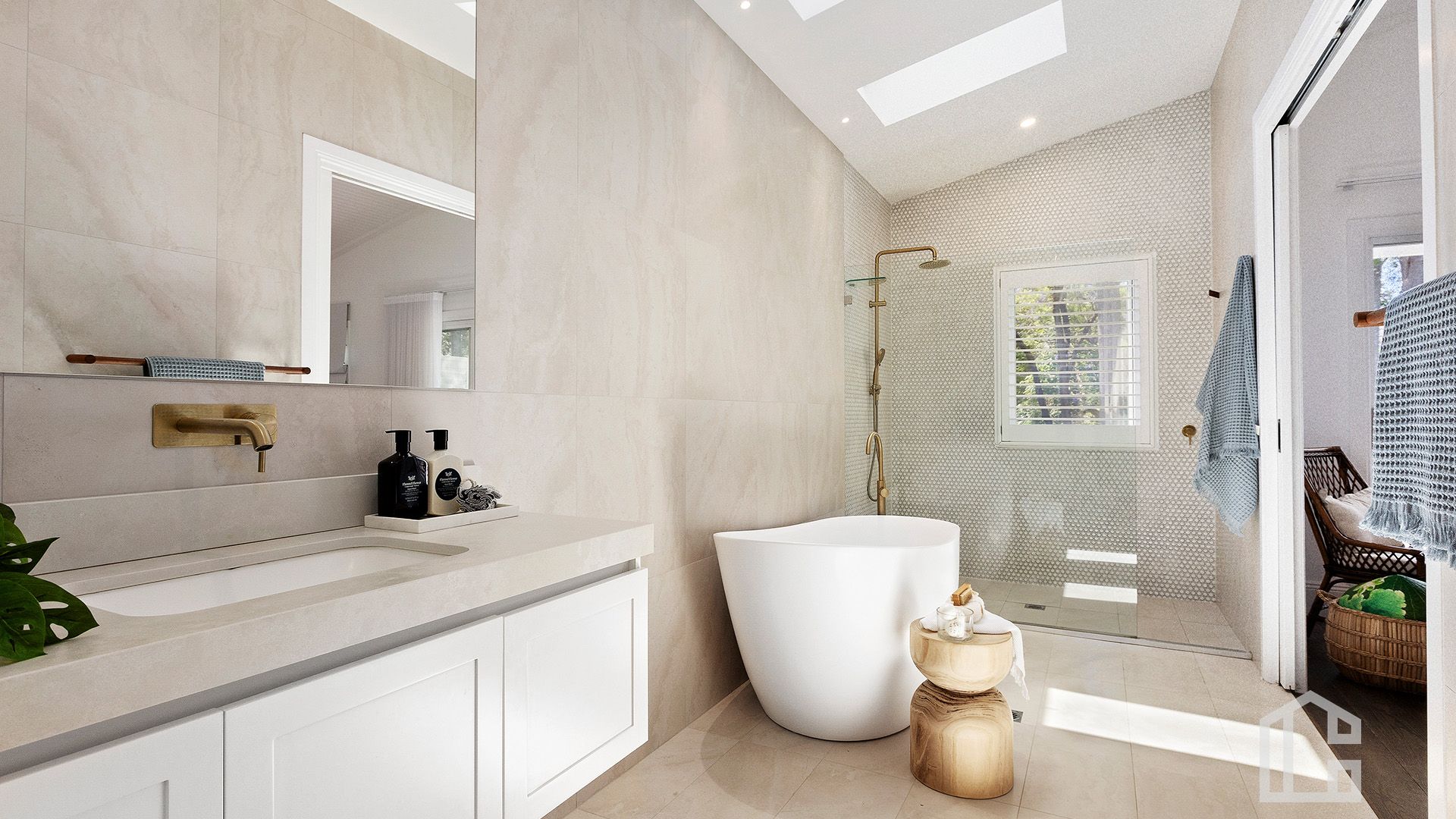 • Lower-level open-plan living, dining + kitchen opening to the outdoors