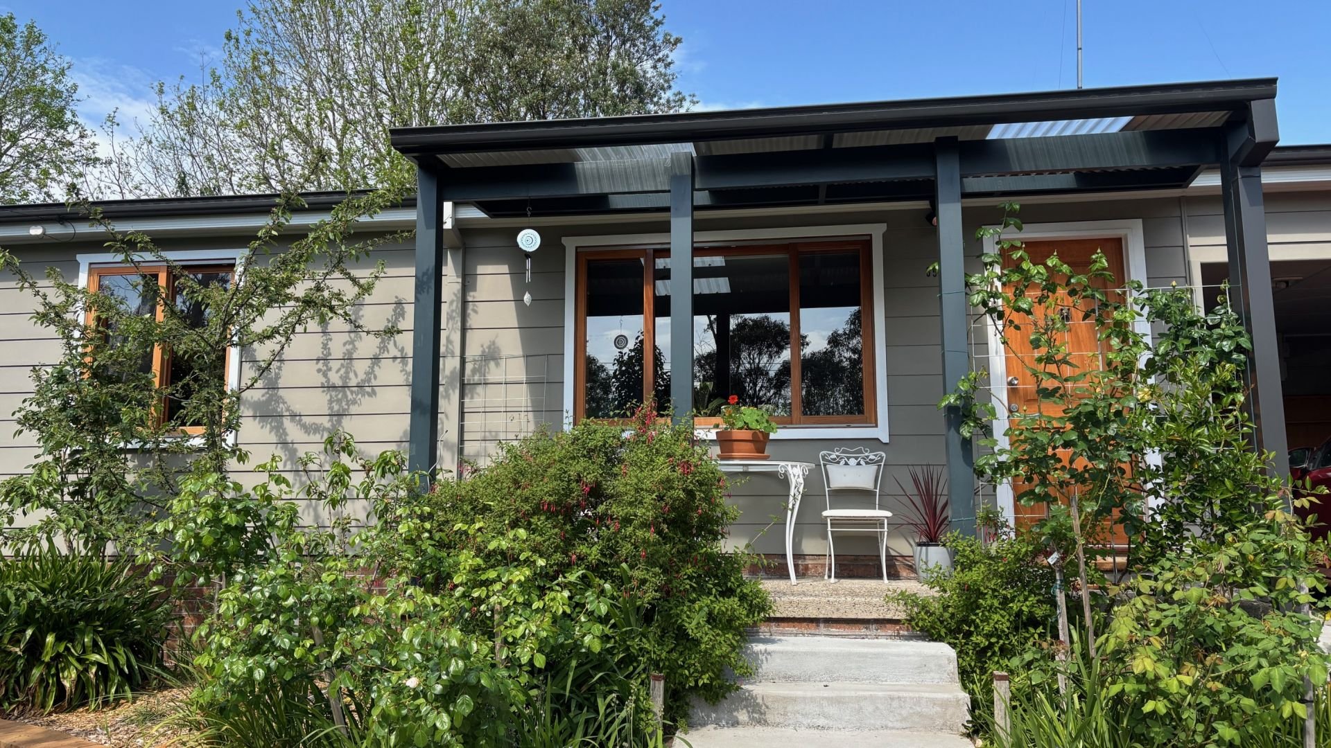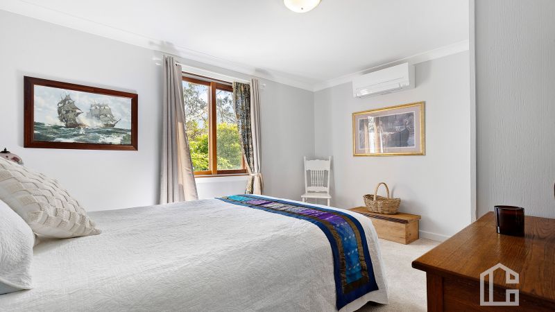 Freshly painted inside and out, new Colorbond roof, guttering, and downpipes. Double-glazed western red cedar windows with insect screens, hybrid timber flooring, new carpets to bedrooms. Renovated bathroom with underfloor heating and walk-in shower. Landscaped gardens, gazebo, and wood-burning outdoor fireplace/stove. Studio with separate hot water system, ensuite, kitchenette, air conditioning, built-ins, and storage.