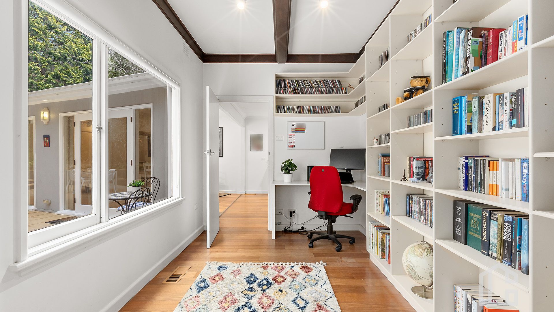 FEATURES - Sweeping renovated kitchen with 900mm gas cooking stove/oven, stainless steel appliances including a dishwasher, walk-in corner pantry and stunning bay window, high ceilings with exposed timber beams, pale oak floating floorboards throughout, ducted gas heating, abundant natural light and a true sense of calm and comfort, tranquil courtyard with water fountain feature, large fully fenced rear yard with vehicle side access to an oversized single garage with additional workshop/storage space, and off-street parking for multiple vehicles.