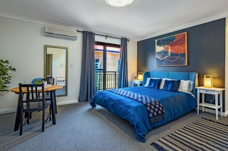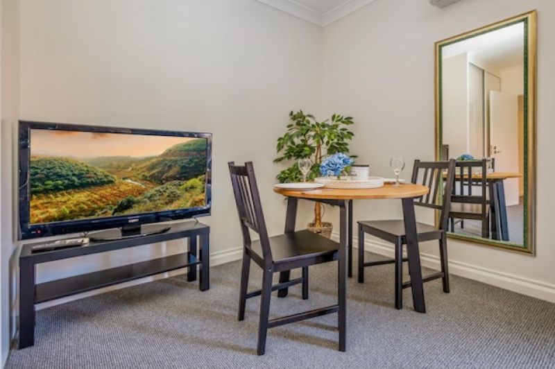 The spacious studio apartment has a living-dining area with kitchenette, a built-in robe, ensuite bathroom and large glass doors out to the balcony. Good sized laundry off entrance hall.