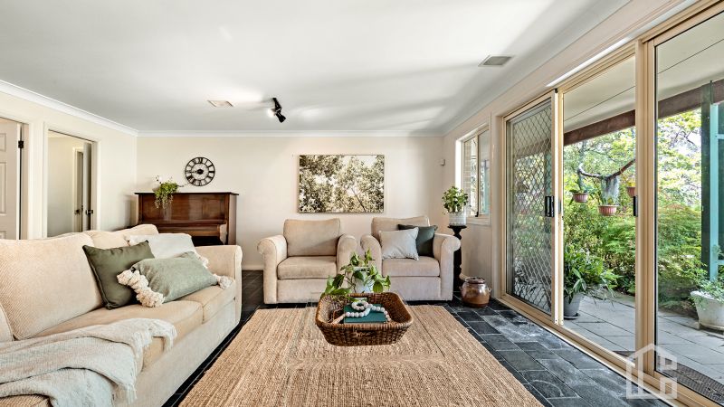 FEATURES - Light filled renovated kitchen with 900mm oven and gas cook top and an abundance of storage, split system A/C (lounge), gas bayonets, upstairs outdoor deck/verandah full length of the house with rear garden views and easterly outlook, immaculate cottage style gardens, feature trees (including a wide variety of maples), enclosed vegetable garden, sandstone retaining walls, fish pond (fish included) water feature, rain water tank, garden shed, solar panels, alarm system, double lock up garage with drive through access and third space for smaller car or generous workshop area, additional off street parking and on a clear day, incredible easterly views. The heart and soul of this extraordinary property is abundantly clear the moment you walk up to the front door and are warmly greeted by the custom made 'Welcome' sign.
