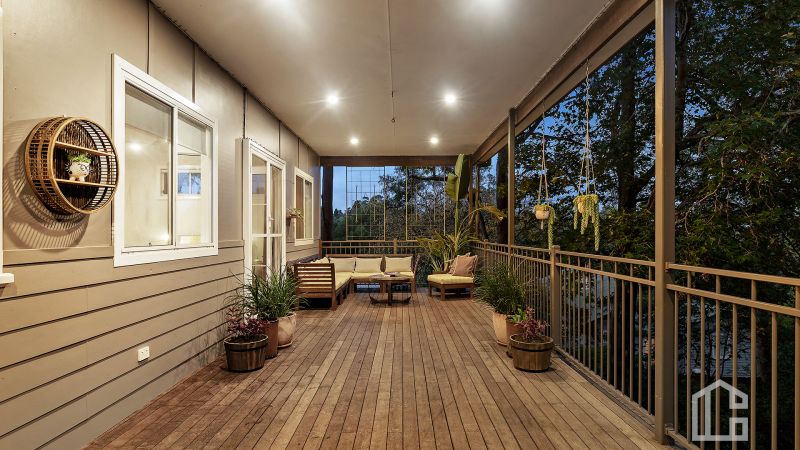 LAYOUT - 3 separate living spaces, 4 double sized bedrooms, separate home office, 2 bathrooms in total, generous kitchen with breakfast bar flows through to the large open well lit living/ dining area, then onto large covered deck overlooking the grassy yard with large Ironbark Cabin (studio) at rear.