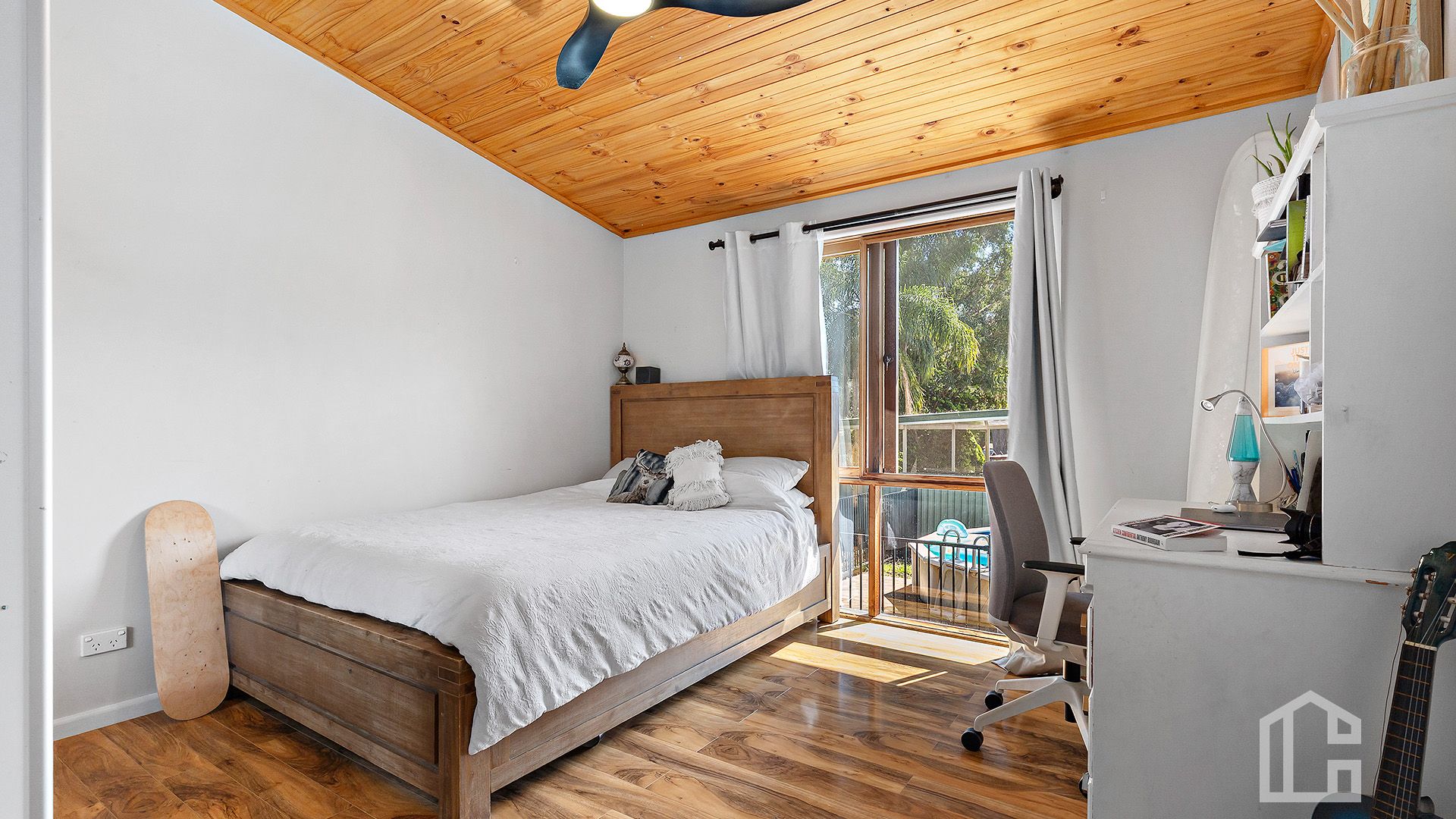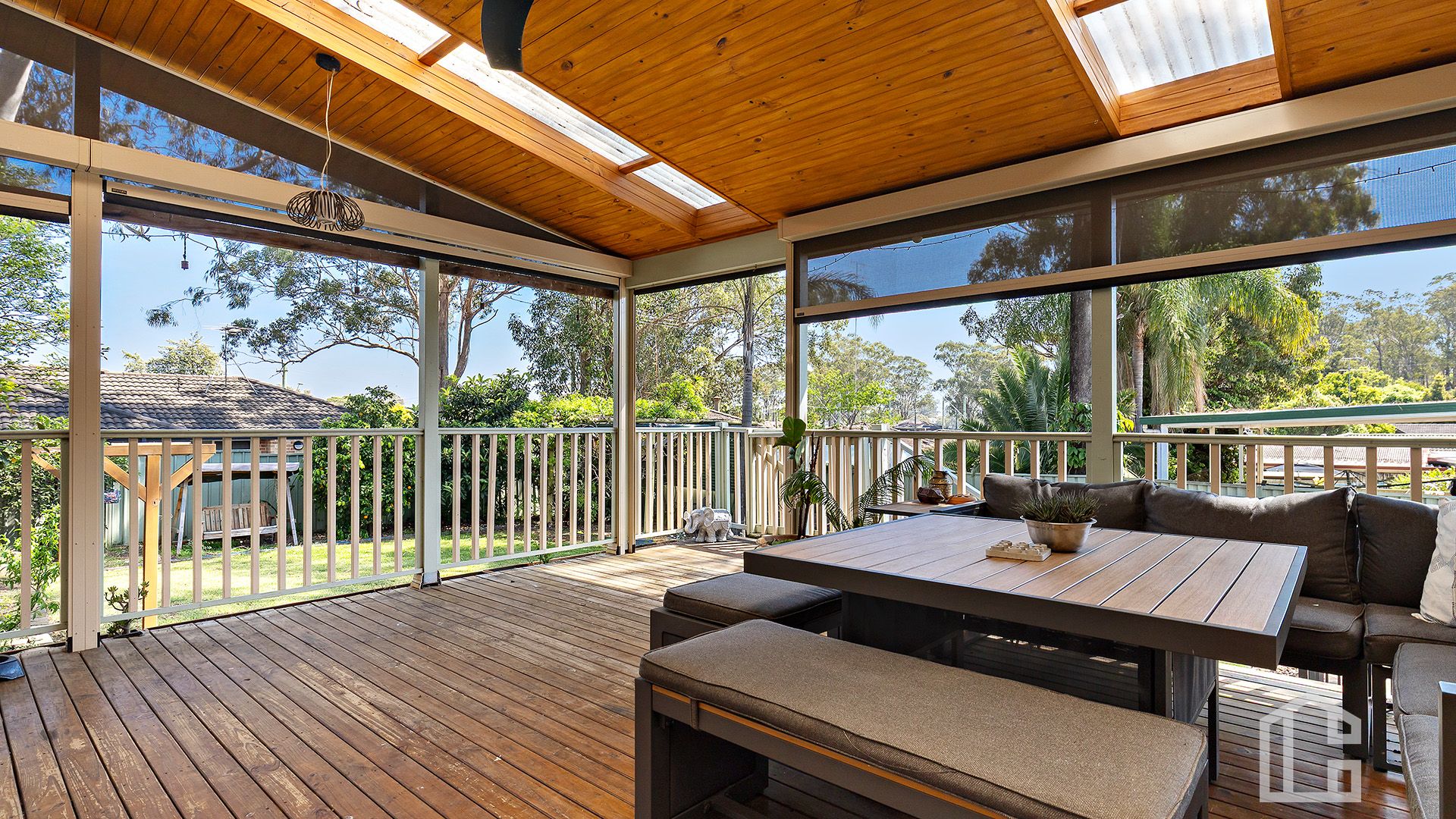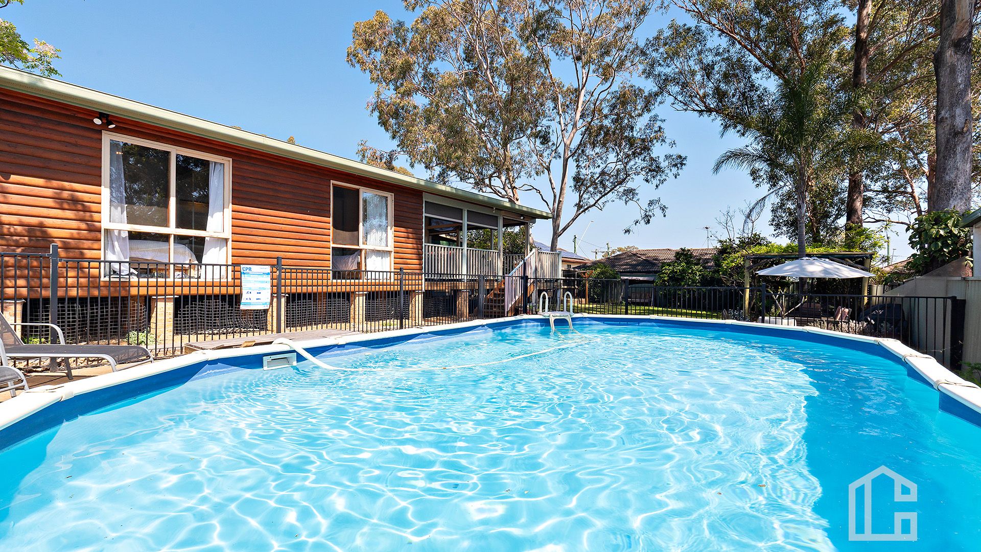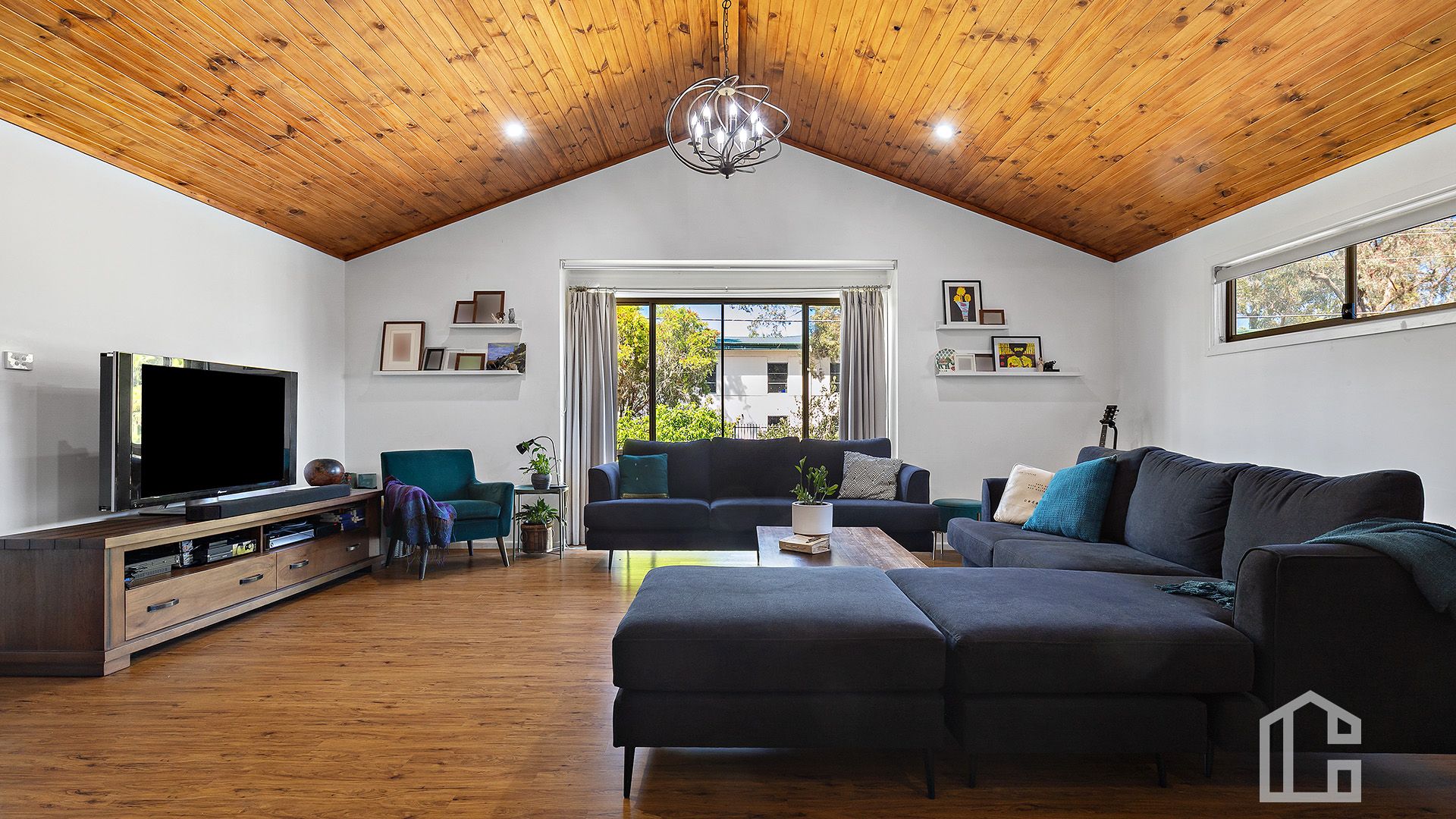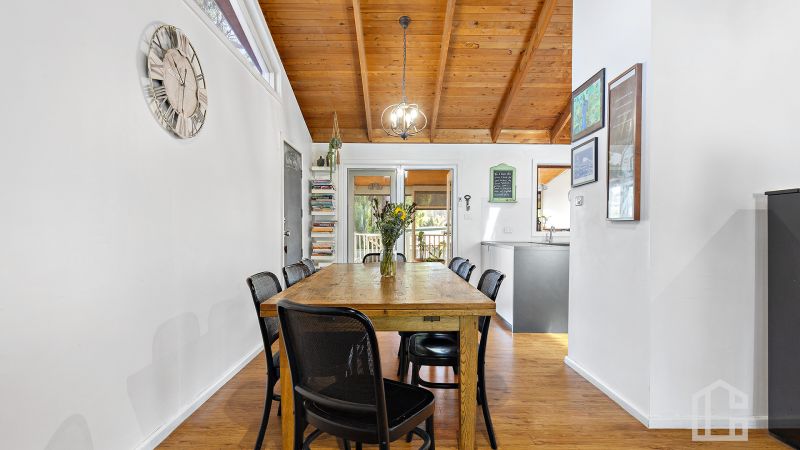 FEATURES: Contemporary kitchen with stainless steel appliances, dishwasher and ample storage, split system air-conditioning, ceiling fans, timber lined vaulted ceilings, clerestory windows, skylights, bay window, built-in robes to three bedrooms, large timber deck with roof, ceiling fan & fitted blinds, above ground swimming pool, turfed flat garden with established plantings, paved entertaining zone, carport + additional off street parking.